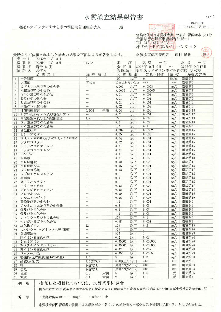 水質検査結果(水道水)9月