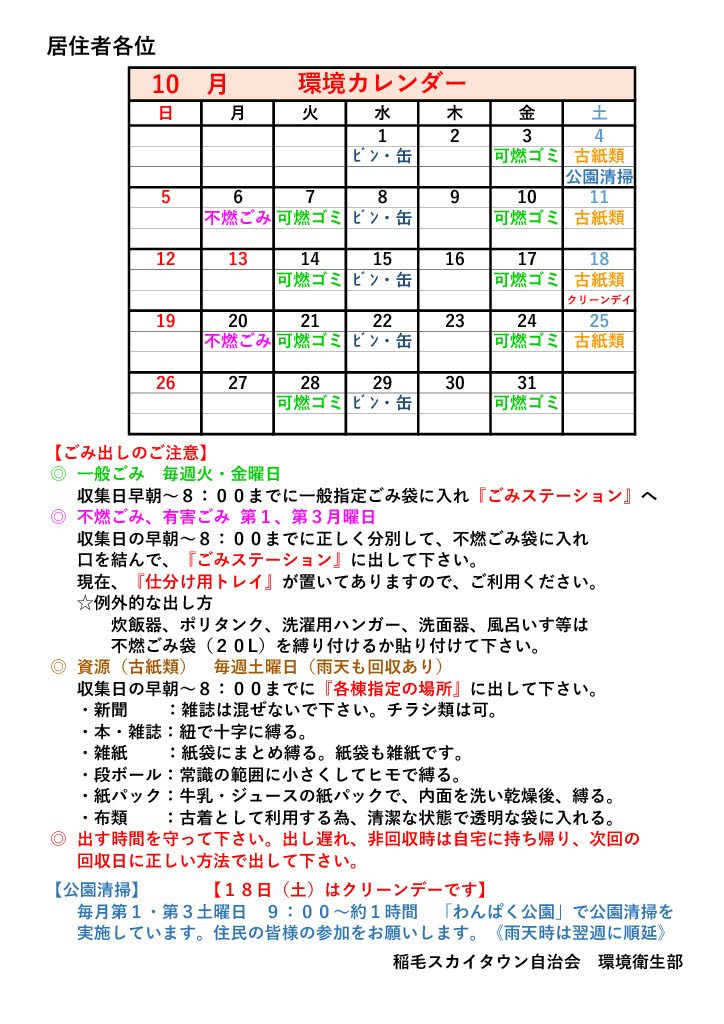 環境カレンダー(10月)